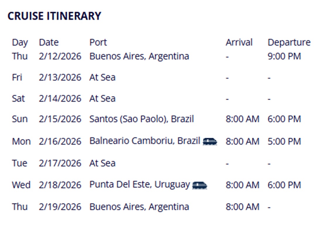 12 FEB 2026: Traslado al muelle BUENOS AIRES para tomar crucero MSC PERZIOSA